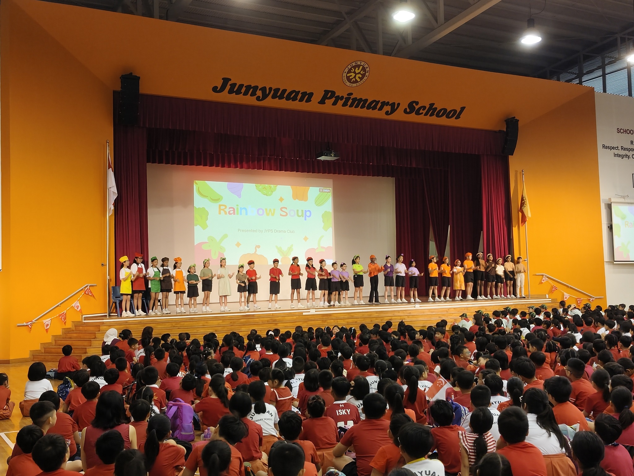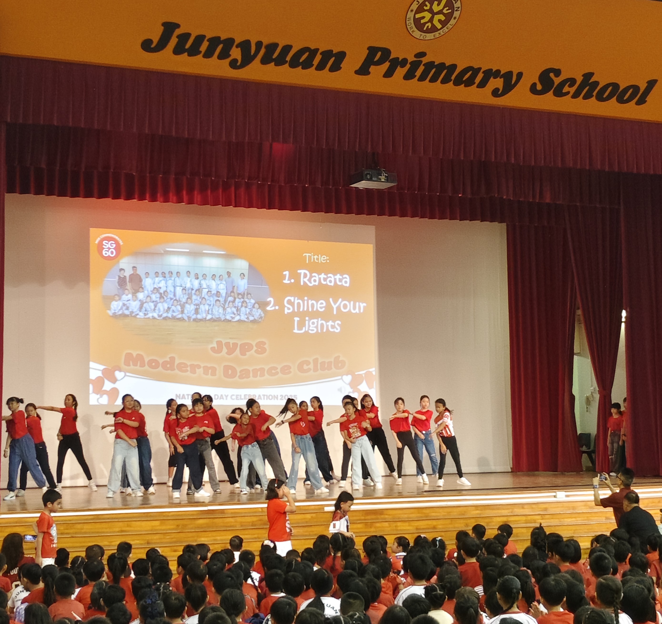The National Day concert commenced with the P5 CCE Ambassadors sharing their NE Show experiences on behalf of the P5 students. It continued with an entertaining and fun-filled concert performed by the Modern Dance CCA , Music Interest Club (MIC) and Parent Support Group (PSG). The Drama Club’s return with “The Rainbow Soup” was especially fitting for National Day, with its themes of friendship, teamwork, and celebrating differences that mirror Singapore’s multicultural identity. The dances and songs put up by the Modern Dance CCA, MIC and the PSG’s rousing rendition of “Singapore Town”, were so entertaining that most of the audience grooved along spontaneously. The concert ended with an entertaining mass singing, led by our talented teacher hosts, Mrs Sarah Quek and Mr Muru. What a time we had as we sung and clapped along in a rousing sing-along of our favourite National Day theme songs. The concert demonstrated how the whole school community came together to celebrate SG60.