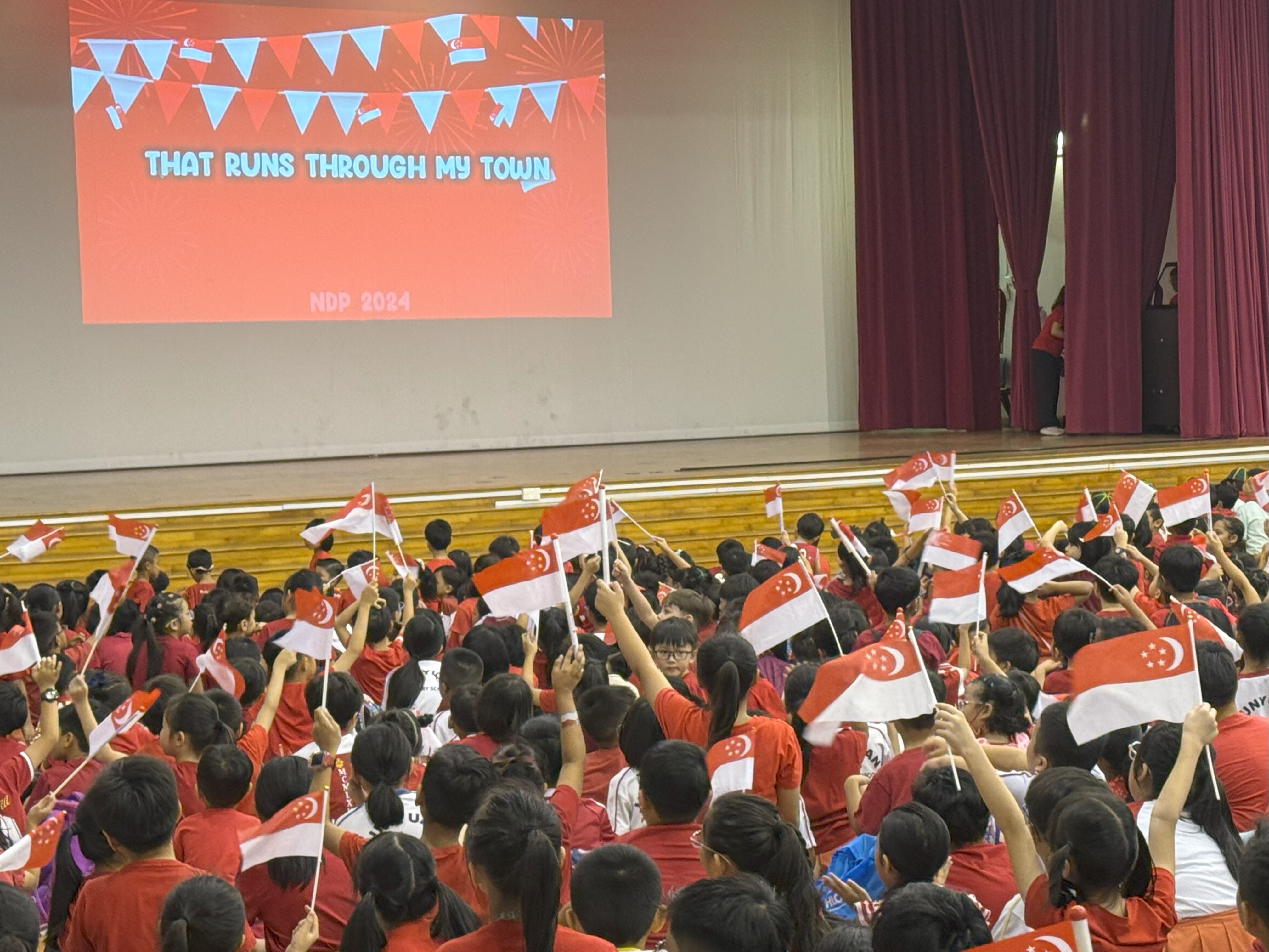 The National Day concert commenced with the P5 CCE Ambassadors sharing their NE Show experiences on behalf of the P5 students. It continued with an entertaining and fun-filled concert performed by the Modern Dance CCA , Music Interest Club (MIC) and Parent Support Group (PSG). The Drama Club’s return with “The Rainbow Soup” was especially fitting for National Day, with its themes of friendship, teamwork, and celebrating differences that mirror Singapore’s multicultural identity. The dances and songs put up by the Modern Dance CCA, MIC and the PSG’s rousing rendition of “Singapore Town”, were so entertaining that most of the audience grooved along spontaneously. The concert ended with an entertaining mass singing, led by our talented teacher hosts, Mrs Sarah Quek and Mr Muru. What a time we had as we sung and clapped along in a rousing sing-along of our favourite National Day theme songs. The concert demonstrated how the whole school community came together to celebrate SG60.